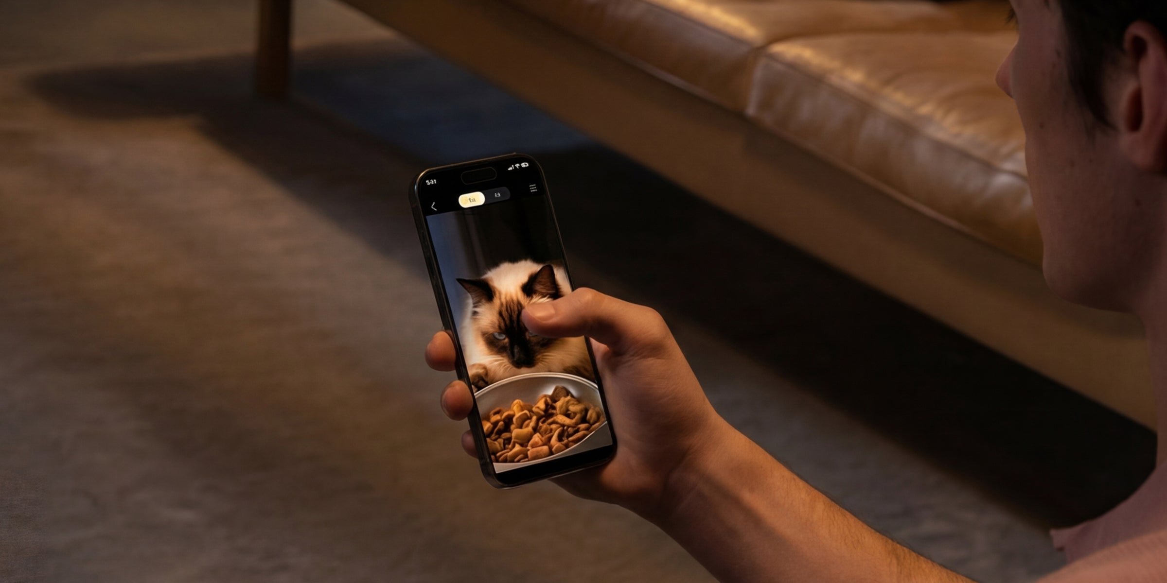 La telecamera HD 1080P* monitora i pasti in diretta e funge da sorveglianza smart. Con un grandangolo di 150°, ogni movimento nella zona pasto è nitido anche al buio, tenendoti sempre aggiornato sulla routine quotidiana del tuo animale.