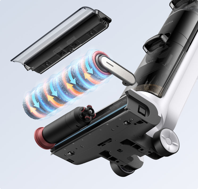 Le 7 batterie ad alta capacità da 2600 mAh di K20 consentono sessioni di pulizia prolungate fino a 30 minuti*, che coprono circa 200 ㎡ di spazio. La spazzola a rullo ruota a una velocità di 500 giri/min*, per garantire una rimozione efficace delle macchie più ostinate.
