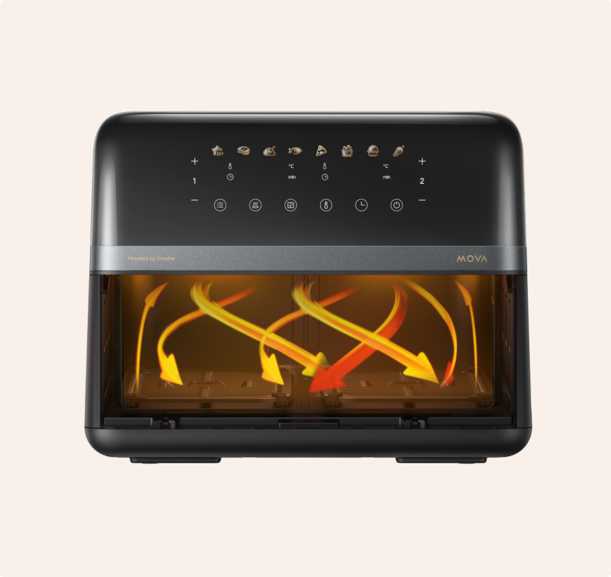 Utilizziamo un'avanzata tecnologia di riscaldamento 3D per garantire una rapida doratura e trattenere l'umidità, mantenendo l'esterno degli alimenti croccante e l'interno morbido e tenero. I fori di ventilazione delle griglie più ampi consentono un flusso d'aria più uniforme per una croccantezza più rapida.