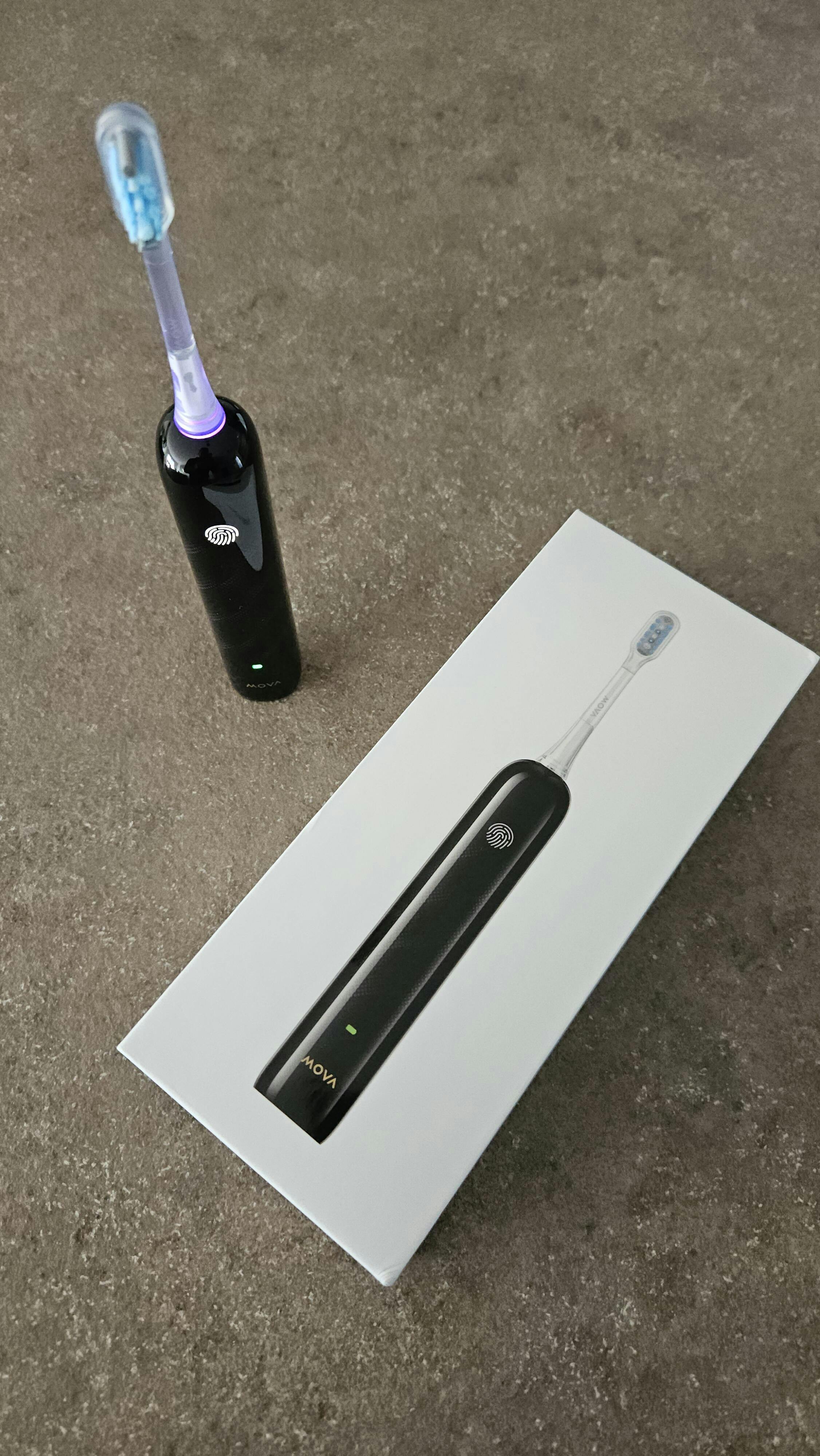 Lo spazzolino arriva in una confezione solida e ben protetta! All'interno sono comprese 2 testine, un cavo USB C per la ricarica e ovviamente il manuale. Lo spazzolino funziona benissimo ed è molto funzionale, in quanto comprende 3 modalità di lavaggio in base alla preferenza dell'utente! Davvero soddisfatto! Brava Mova!