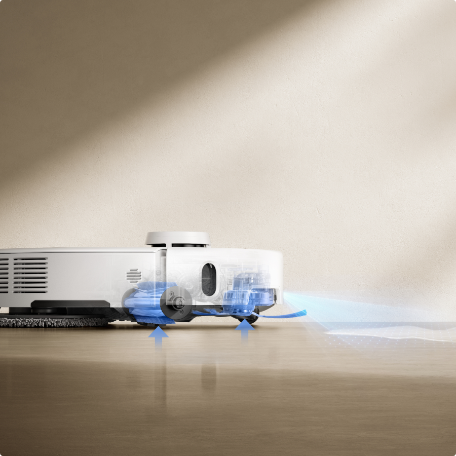 *10 mm: basato sui dati del nostro laboratorio interno. L'altezza di sollevamento è definita come la distanza tra le setole della spazzola e il pavimento dopo il sollevamento della spazzola laterale.