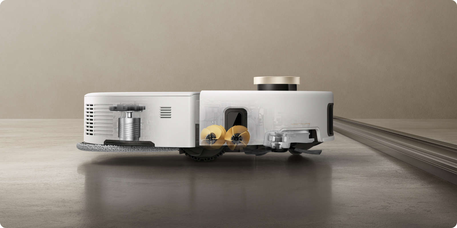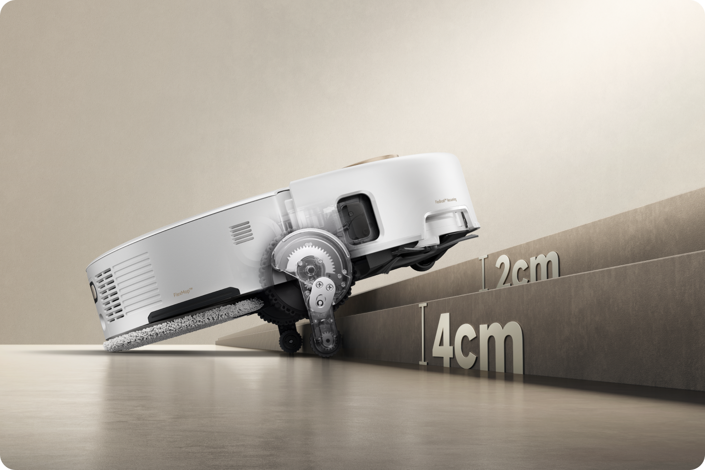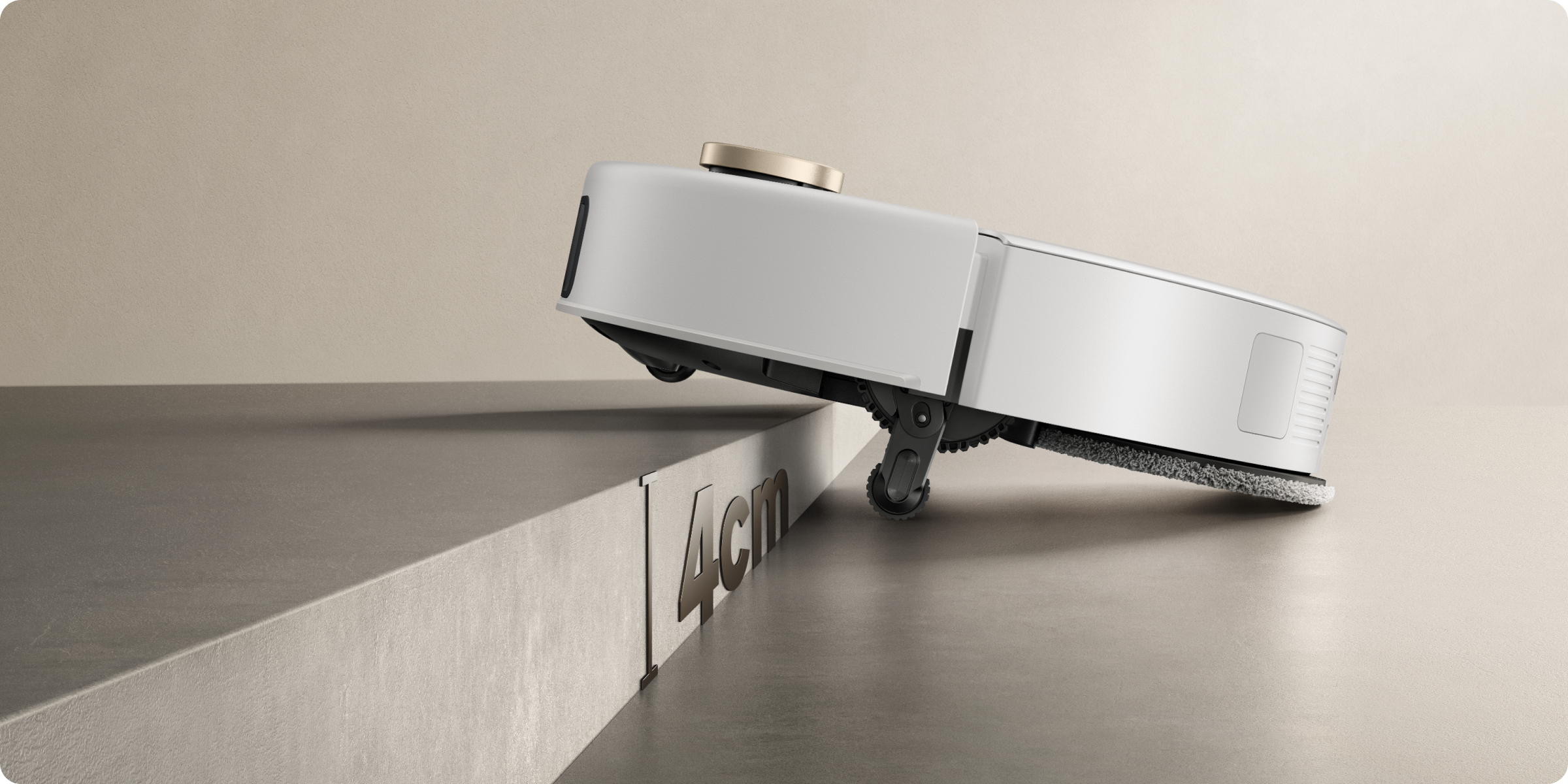 Il sistema StepMaster™ è dotato di gambe robotizzate retrattili che sollevano il telaio consentendogli di superare facilmente gradini, soglie, binari delle porte, gambe di mobili a forma di U e piccoli ostacoli alti fino a 6 cm*. Si muove con facilità anche in ambienti domestici complessi, garantendo una pulizia accurata e un ritorno senza alcuna difficoltà.