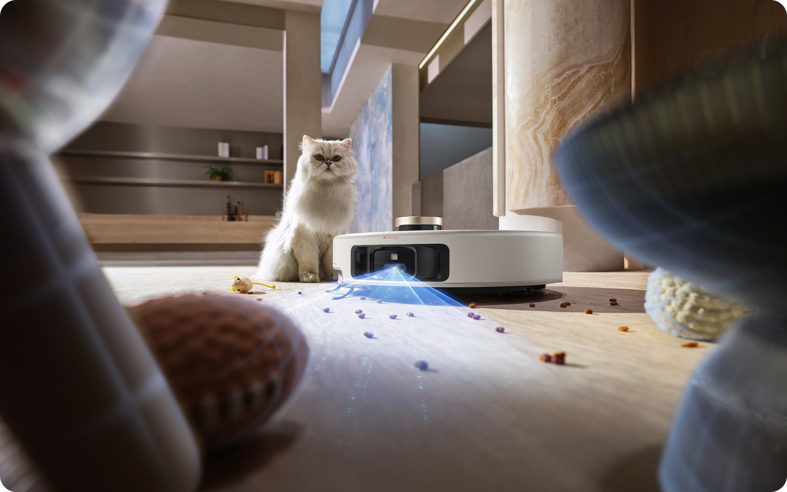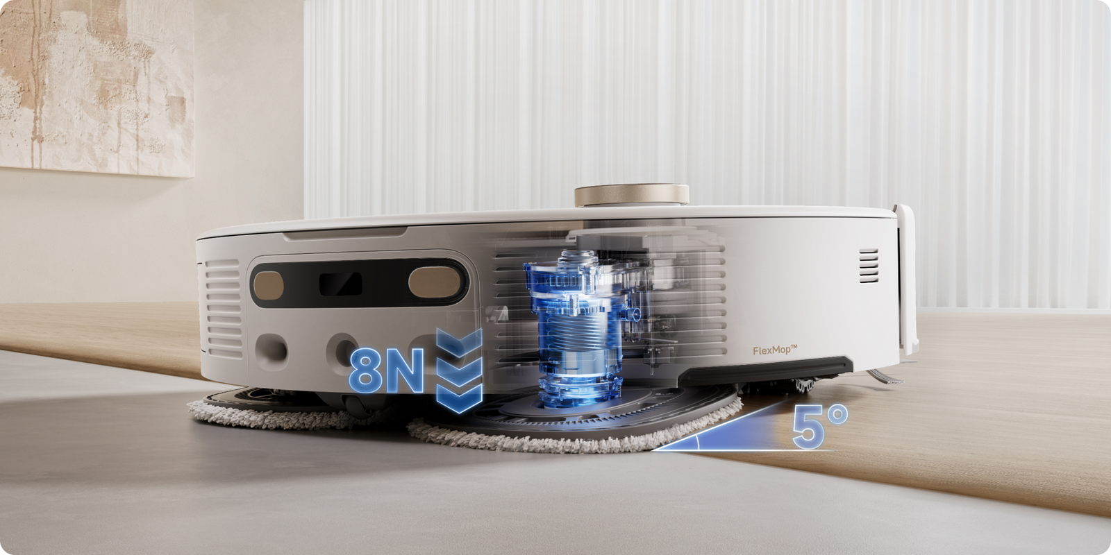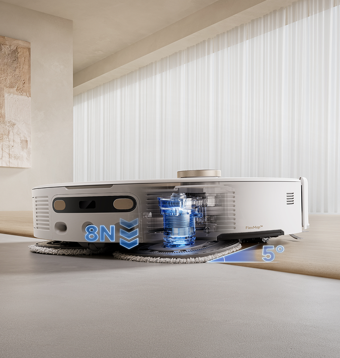 Il sistema StepMaster™ è dotato di gambe robotizzate retrattili che sollevano il telaio consentendogli di superare facilmente gradini, soglie, binari delle porte, gambe di mobili a forma di U e piccoli ostacoli alti fino a 6 cm*. Si muove con facilità anche in ambienti domestici complessi, garantendo una pulizia accurata e un ritorno senza alcuna difficoltà.