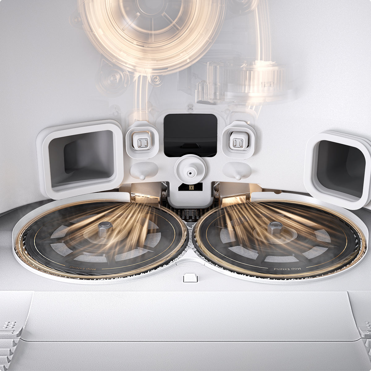 *260 giri/min: In base ai test eseguiti nei nostri laboratori. Le prestazioni effettive possono variare in base al tipo di utilizzo. La velocità predefinita del mocio è di 180 giri/min. Quando rileva sporco solido o liquido, aumenta automaticamente la velocità fino a 260 giri/min, per una pulizia più efficace.