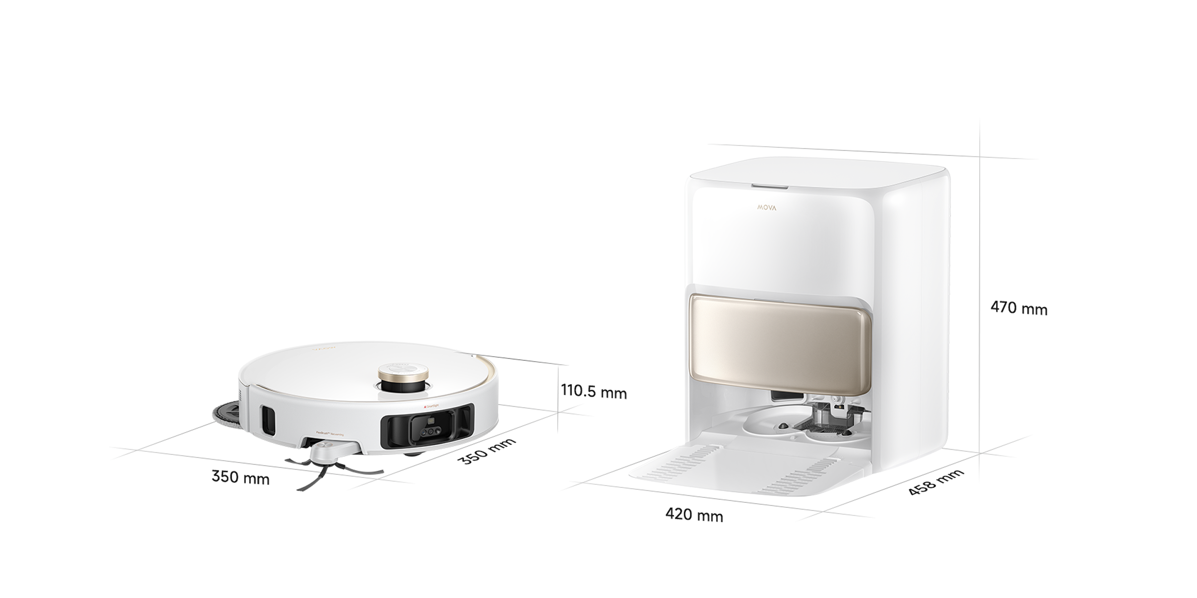 Dimensioni del robot aspirapolvere 350 x 350 x 110.5mm(DToF ausgefahren)