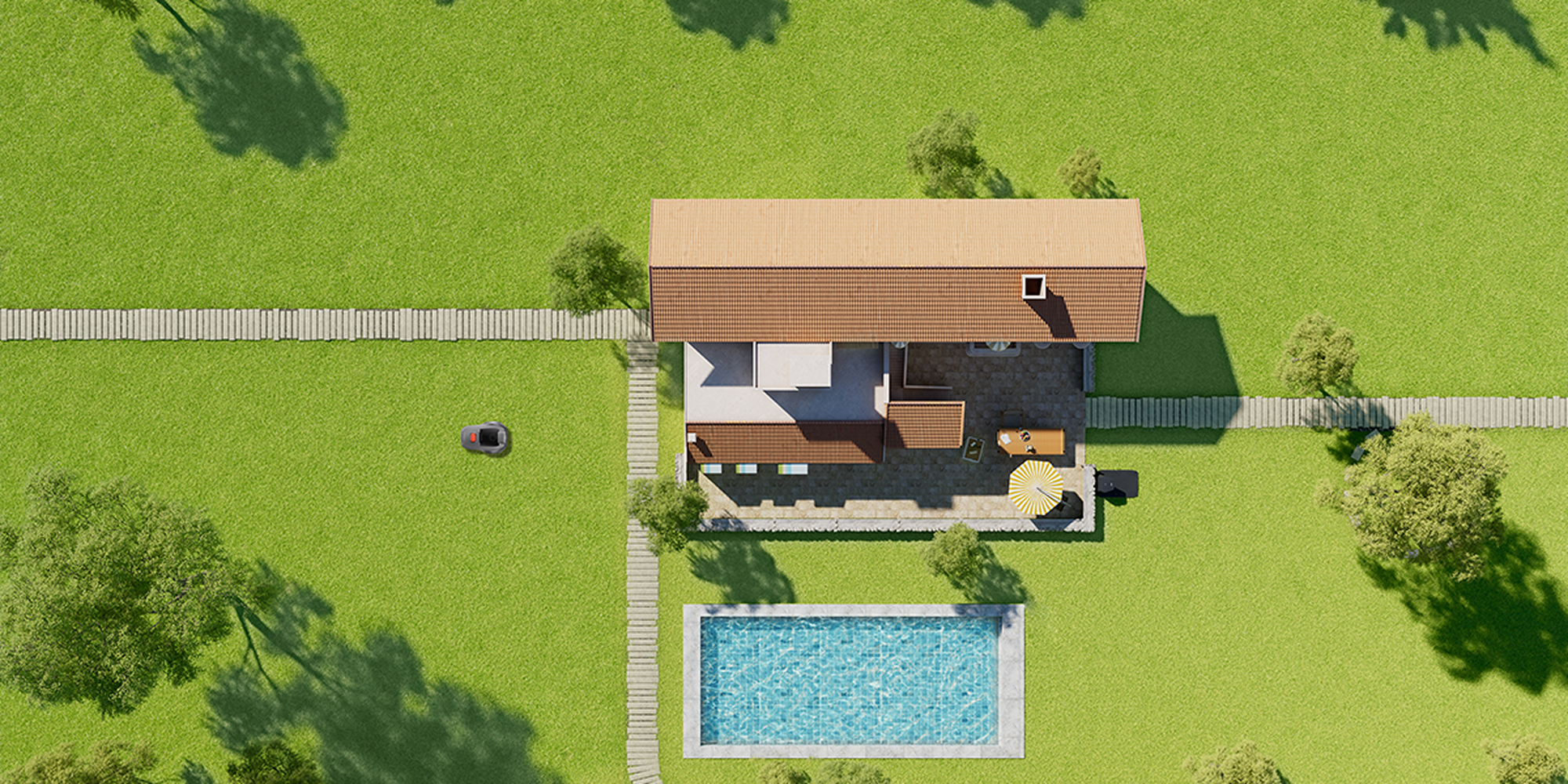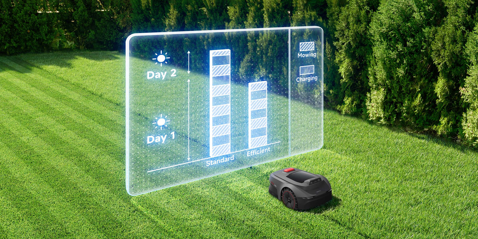 Grazie alla pianificazione precisa a forma di U, il robot rasaerba utilizza sempre il percorso più efficiente per garantire la massima resa e un prato bello e ordinato.
