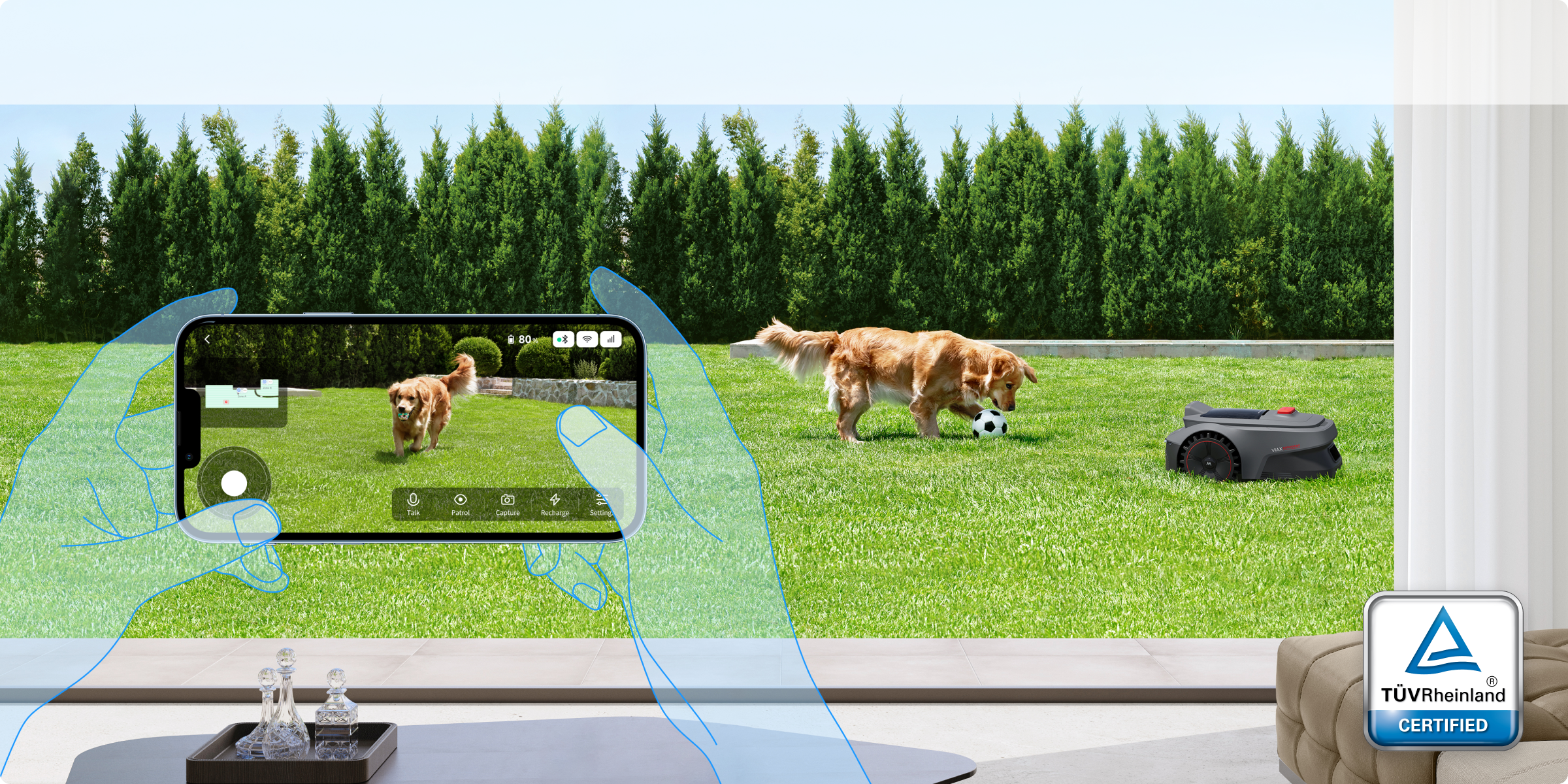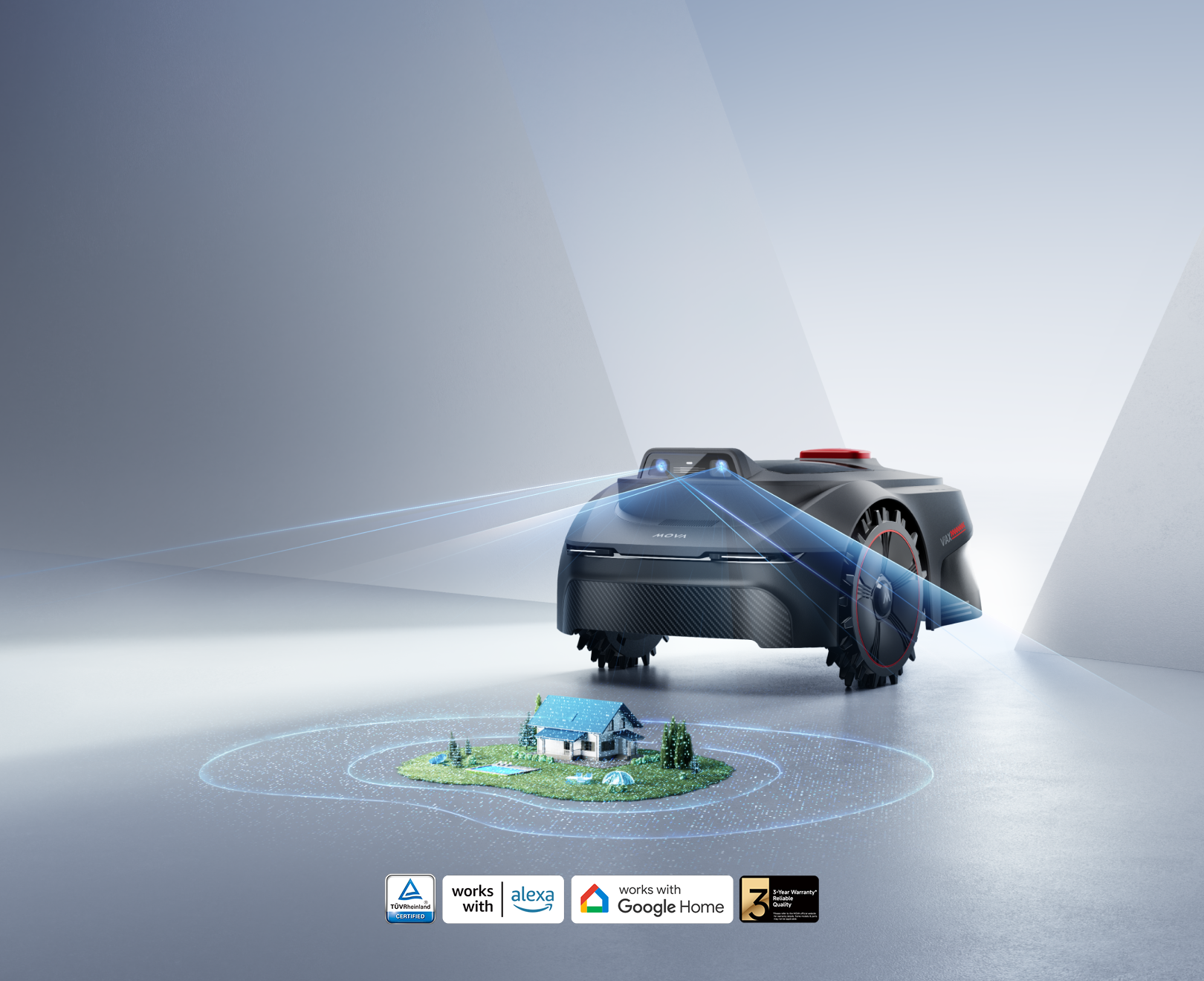 La tecnologia UltraEyes™ 1.0 consente al rasaerba di funzionare anche come sistema di sicurezza che protegge il tuo spazio verde tramite l’app MOVAhome, con protezione dei dati certificata TÜV Rheinland per salvaguardare la tua privacy.