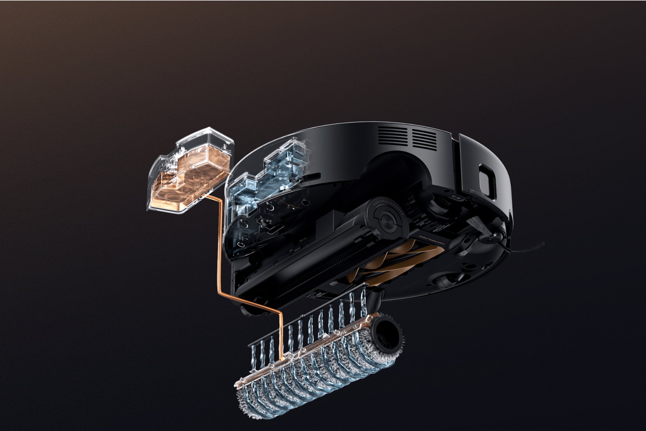 La base intelligente gestisce in autonomia lo svuotamento, il lavaggio e l’asciugatura del rullo, riducendo al minimo la manutenzione manuale.